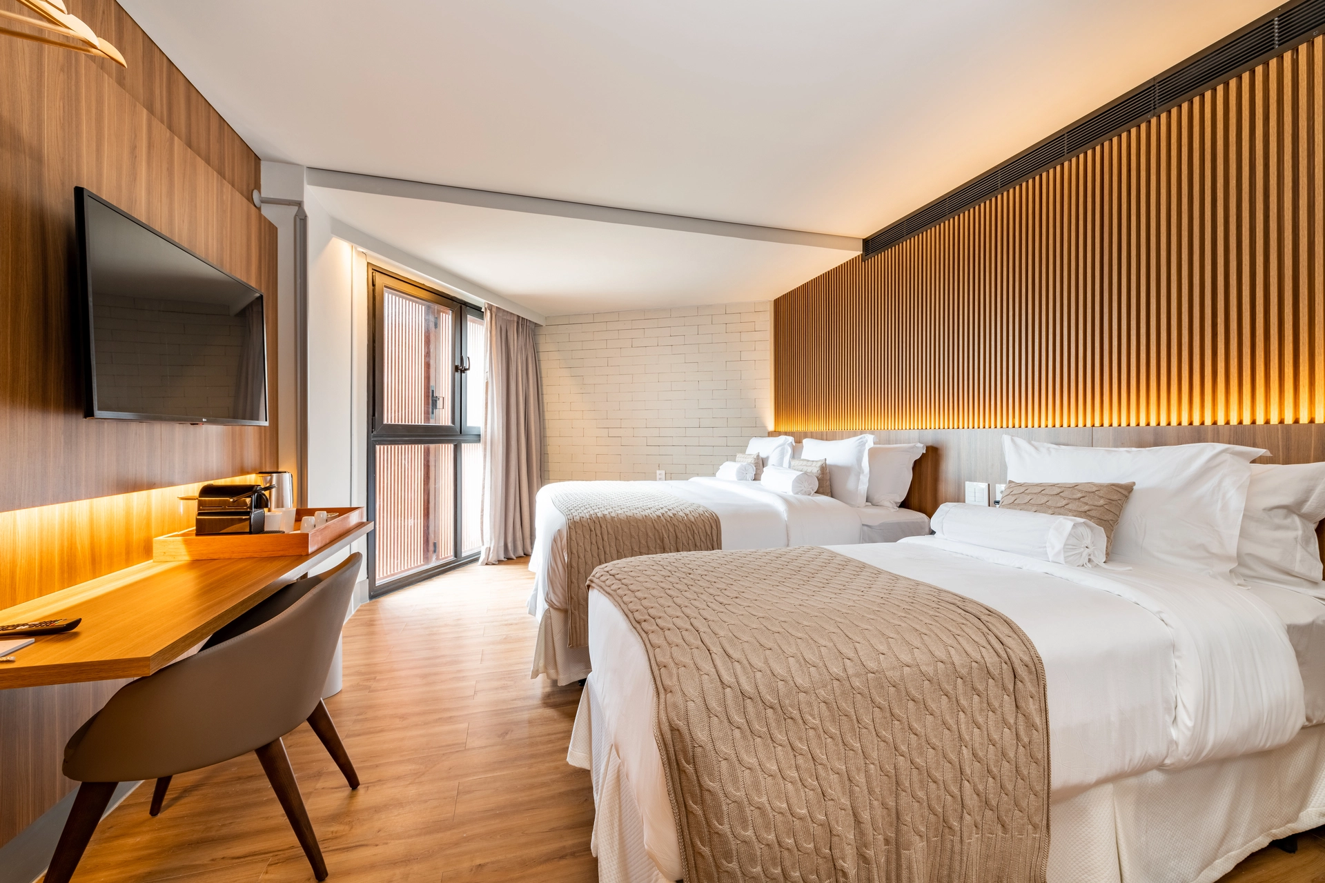 Acolhimento e espaço para compartilhar bons momentos. Com duas camas queen, este apartamento é perfeito para quem viaja com a companhia de quem se ama. Ambientes funcionais, climatização inteligente e detalhes que acolhem: da textura dos tecidos à disposição intuitiva do mobiliário.